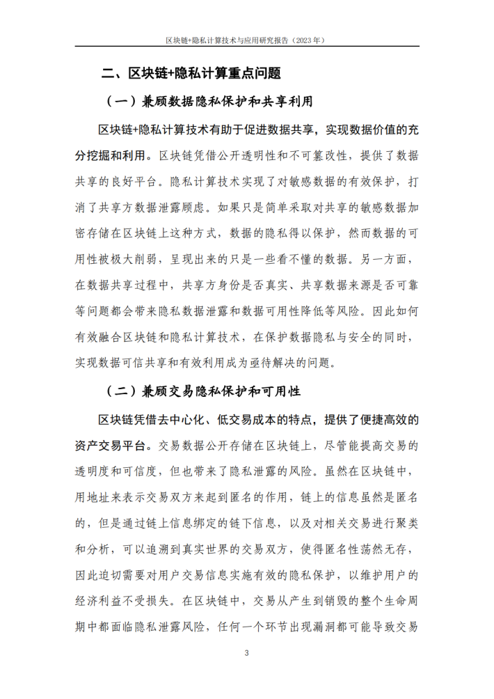 为了进一步凝聚产业共识,推动区块链基础设施规模化发展,启动了区块链系列报告编制工作,希望能够有助于产业界和学术界凝聚共识,更好地发挥区块链作为基础设施的作用,为技术和产业变革提供创新动力。本报告聚焦“区块链+隐私计算”方向,通过理清“区块链+隐私计算”概念,分析“区块链+隐私计算”核心挑战和发展路径,将有助于推动区块链基础设施与隐私计算融合化部署,优化区块链基础设施性能,推动区块链基础设施规模化落地。