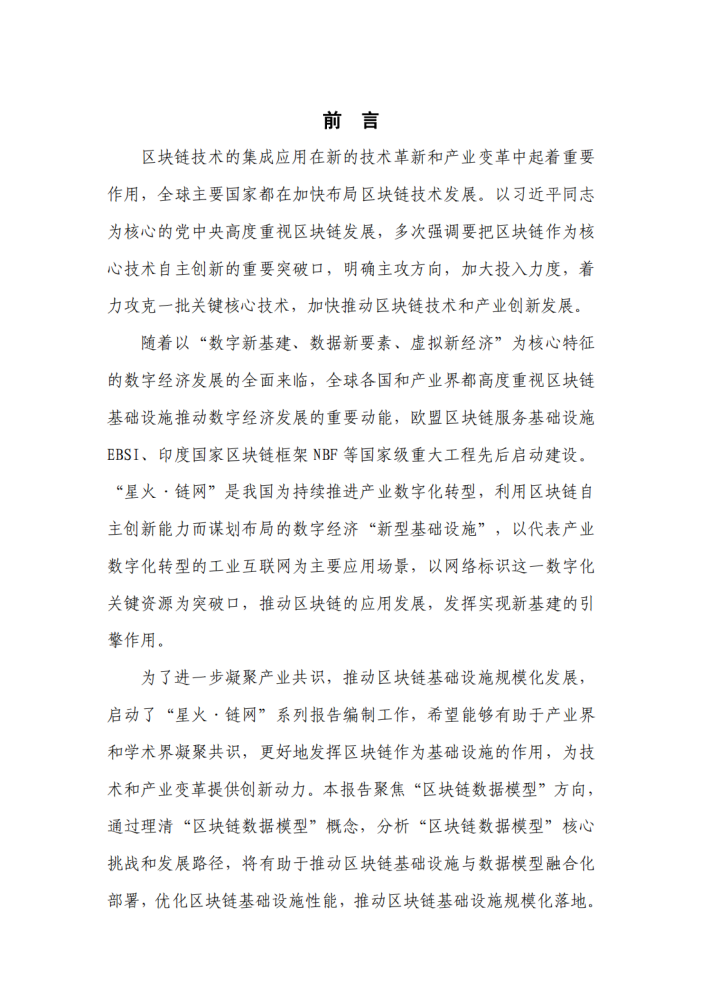为了进一步凝聚产业共识,推动区块链基础设施规模化发展,启动了“星火·链网”系列报告编制工作,希望能够有助于产业界和学术界凝聚共识,更好地发挥区块链作为基础设施的作用,为技术和产业变革提供创新动力。本报告聚焦“区块链数据模型”方向,通过理清“区块链数据模型”概念,分析“区块链数据模型”核心挑战和发展路径,将有助于推动区块链基础设施与数据模型融合化部署,优化区块链基础设施性能,推动区块链基础设施规模化落地。
