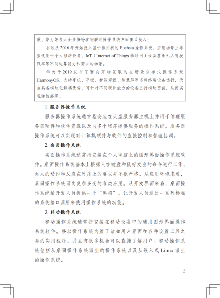操作系统多场景(服务器、云计算、边缘计算、嵌入式)底层同构是技术承载;跨场景、跨终端、云驱动将成为操作系统的新发展趋势,互联、互通、互操作成为共性需求,逐渐驱动着操作系统的功能越来越强大。开源和生态建设将成为国产操作系统发展的主流模式,我们提倡借鉴华为公司openEuler、OpenHarmony的探索和实践,共建技术、商业、生态、人才、社区、文化交融的开源生态体系。