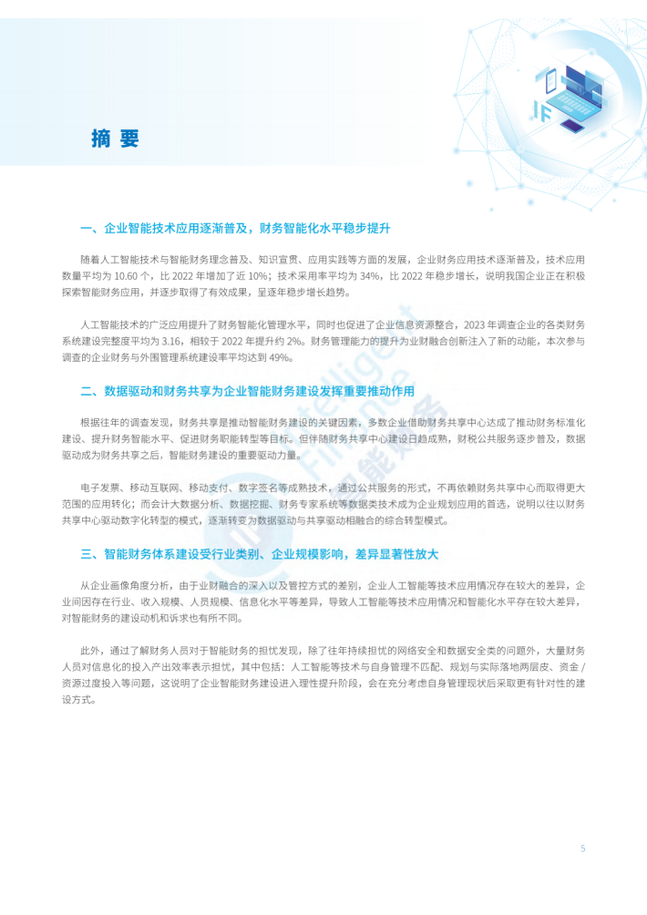上海国家会计学院与中国石油集团共享运营有限公司、金蝶软件(中国)有限公司、元年科技股份有限公司、上海艺赛旗软件股份有限公司、中兴新云服务有限公司、科大讯飞股份有限公司、用友网络科技股份有限公司、浪潮集团有限公司、经邦软件技术有限公司、上海汉得信息技术股份有限公司、汇付天下有限公司、复星财务共享服务中心、申能(集团)有限公司、浙能财务有限公司、唯你科技、北京久其软件股份有限公司等机构联合开展“2023中国企业财务智能化现状调查”,由上海国家会计学院信息调查中心制作,向企业财务管理者、会计从业人员及相关人士发放调查问卷,了解智能财务在中国的应用现状及发展趋势,探究我国企业财务工作与人工智能等新技术之间的关系,探索智能财务在我国成熟运用的特点,希望为中国企业提供参考和借鉴依据,推动中国智能财务的建设和发展。