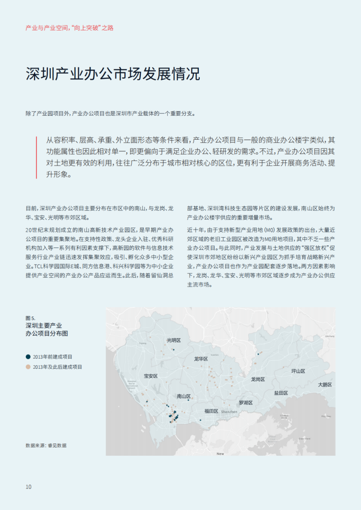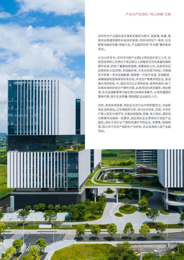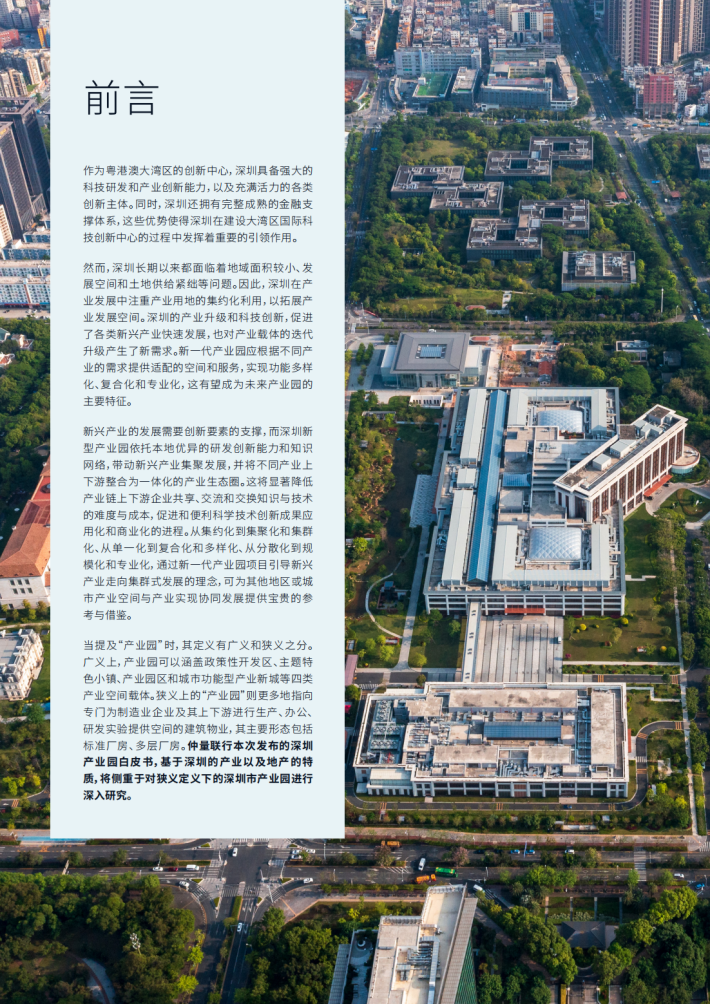 然而,深圳长期以来都面临着地域面积较小、发展空间和土地供给紧绌等问题。因此,深圳在产业发展中注重产业用地的集约化利用,以拓展产业发展空间。深圳的产业升级和科技创新,促进了各类新兴产业快速发展,也对产业载体的迭代升级产生了新需求。新一代产业园应根据不同产业的需求提供适配的空间和服务,实现功能多样化、复合化和专业化,这有望成为未来产业园的主要特征。