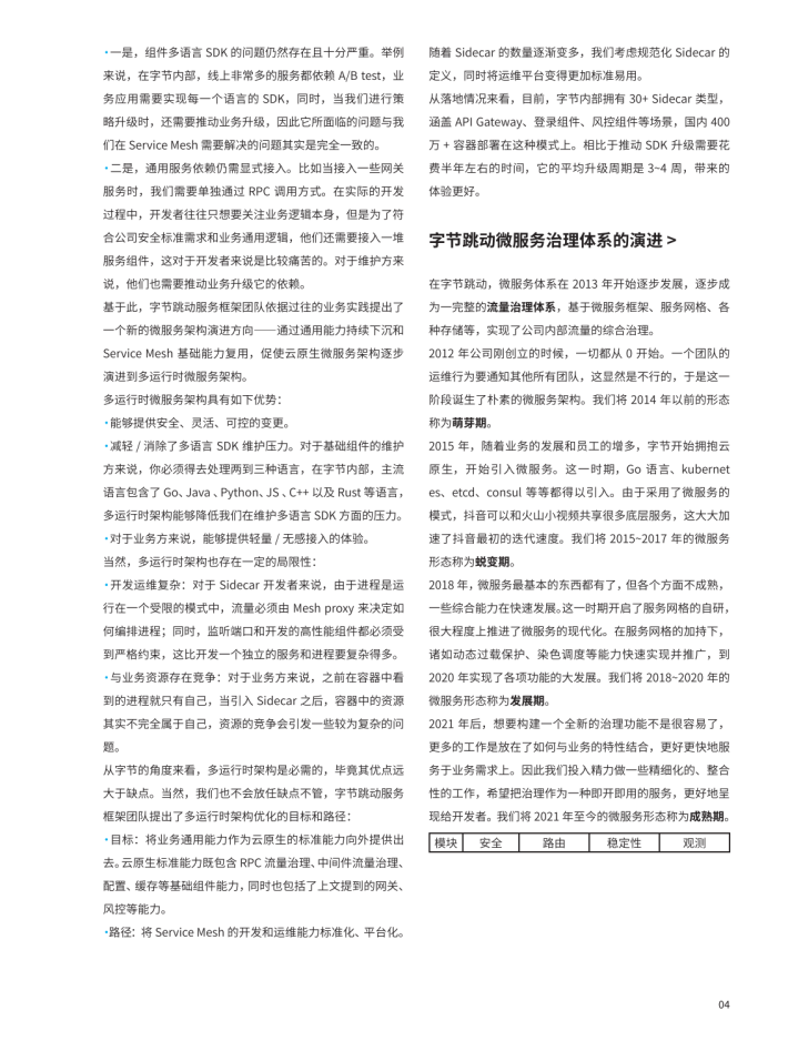 最后,Service Mesh在字节跳动目前已经是全面落地状态。基于以上4个特点,当前字节跳动微服务架构遇到的主要挑战还是围绕研发效率、运行效率和稳定性。其中研发效率和稳定性是几乎所有互联网公司都会遇到的:多语言、易用性、性能、成本……。