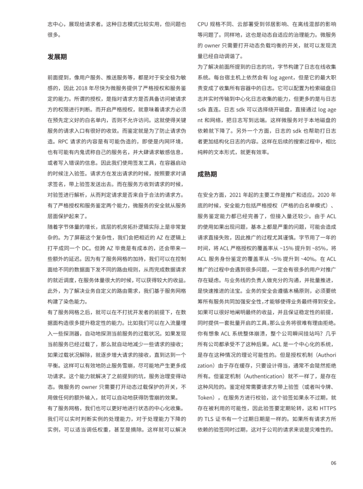 其次是全面容器化、PaaS化。字节跳动的在线微服务,超过90%都运行在容器里。所有上线都通过 PaaS化平台进行,这意味着线上不会存在物理机部署这种模式。这种做法既有一些挑战:增加调度复杂性;也带来了一些便利性:有利于新功能的推广。