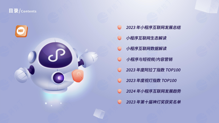 新的一年小程序互联网又会有哪些惊喜等待着我们?或许是再次改变我们工作、生活方式的Al与大模型,或许是开辟区域经济数字新篇章、构建协作共赢大生态的内容营销,或许是化身英雄拥抱品牌的“自来水”,阿拉丁研究院相信,一切存在的都是即将被改变的,而一切合理的也终将变得更美好,让我们携手共进,为全网小程序时代摇旗呐喊吧!