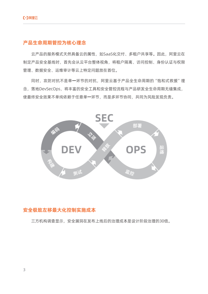 基于DevSecOps理念,打破安全与研发流程间的壁垒,通过安全左移,实现产品研发质量与安全质量的一致性,拉齐产品安全基线,让客户上云后自动具备高安全等级,降低手动维护其安全性的难度和工作量,从而有更多的精力聚焦在高级安全威胁发现与自身业务发展。