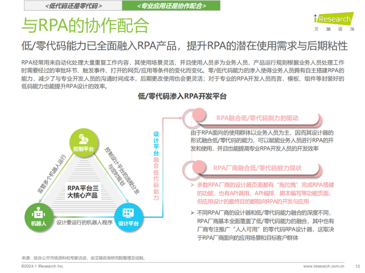 事实证明,在供给侧市场,低/零代码将会协助提升RPA、iPaaS等多个市场的开发效率,但是开发出的软件面向的客户需求,与低/零代码应用开发平台产品本身面向的客户软件需求仍有差异,因而“协作配合与专业应用”并非零和博弈。同时需求侧对于低/零代码应用开发平台产品本身的认知较为成熟,根据艾瑞对多种职位的在岗员工调研,接触并能使用的企业员工比例达60%以上,低/零代码市场的推进较为稳健,投资人也期待一批新的实现规模收益和内生增长的企业出现。