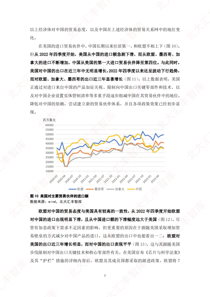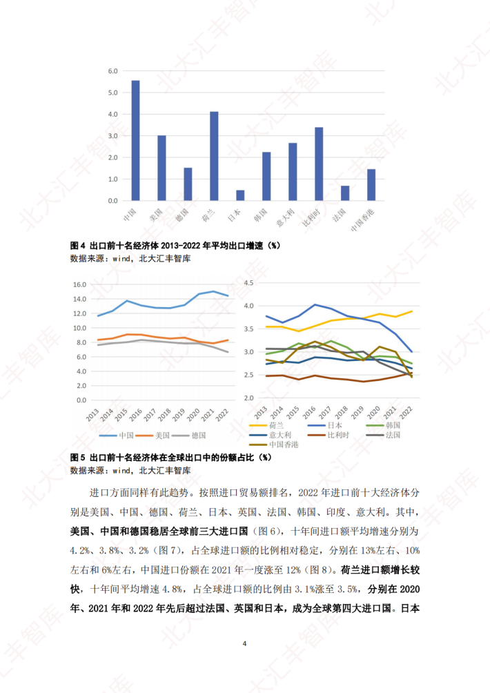 疫情结束前后,欧美国家掀起新一轮的贸易保护主义,再加上长期加息政策导致的需求收缩,从2022年下半年开始,全球贸易已出现疲弱走势,2023年10月,世贸组织预测今年全球商品贸易量将增长0.8%,不到4月份预测值(1.7%)的一半。与此同时,全球主要经济体的贸易地位也发生了较大的变化,中国贸易