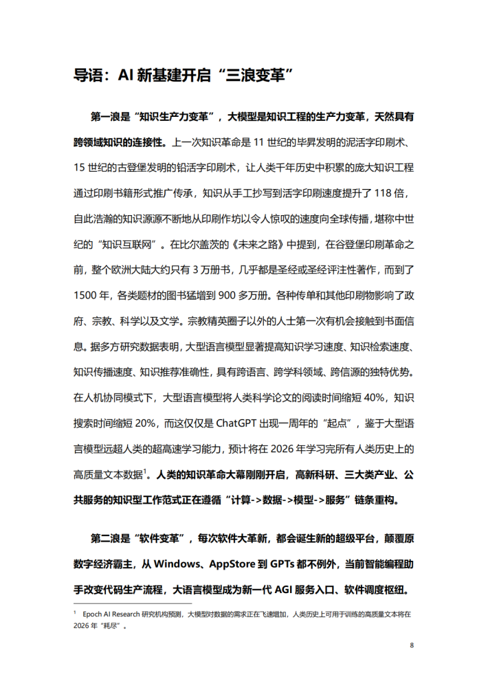 新一代Al基础设施不是传统云的Al化,两者具有明显定位和发展路径的差别。新一代Al基础设施主要面向产业用户,为大模型训练、区域行业及应用孵化创新提供Al基座。新一代Al基础设施跟随产业布局,采用“大中心+节点”模式,构建起覆盖整个区域的算力网络,并通过建(设)运(营)联动促进区域经济的一体化和智能化发展。
