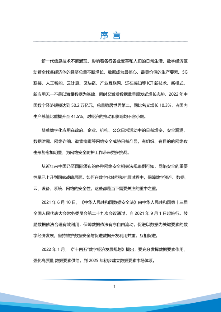 新一代信息技术不断涌现,影响着各行各业变革和人们的日常生活,数字经济驱动着全球各经济体的经济总量不断增长,数据成为最核心、最具价值的生产要素。5G联接、人工智能、云计算、区块链、产业互联网、泛在感知等ICT新技术、新模式、新应用无一不是以海量数据为基础,同时又激发数据量呈爆发式增长态势。2022年中国数字经济规模达到50.2万亿元,总量稳居世界第二,同比名义增长10.3%,占国内生产总值比重提升至41.5%,对经济的拉动和影响均不容小觑。