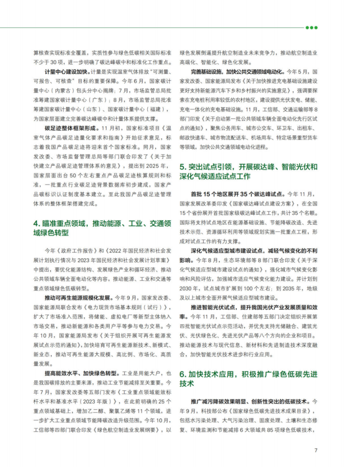 可再生能源装机量创历史新高,并超越煤电成为我国“第一大电源”;新能源汽车、光伏和锂电池成为出口新三样,成为拉动经济增长的绿色新动能;碳市场扩容加快,全国CCER市场实现重启;碳足迹管理体系整体框架确立,绿色消费理念日益普及。
