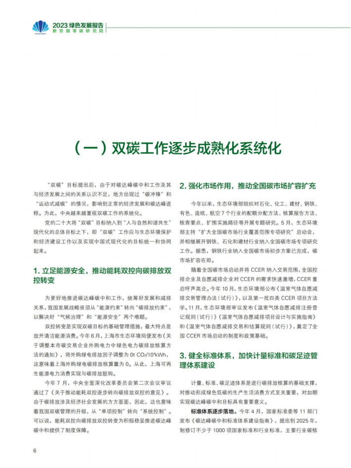 2023年是我国绿色发展进程中十分重要的一年。面对日益严峻的极端气候,我国更加注重双碳工作的系统化推进,积极稳妥推动能耗双控向碳排放双控转变,双碳工作开始稳步发力。