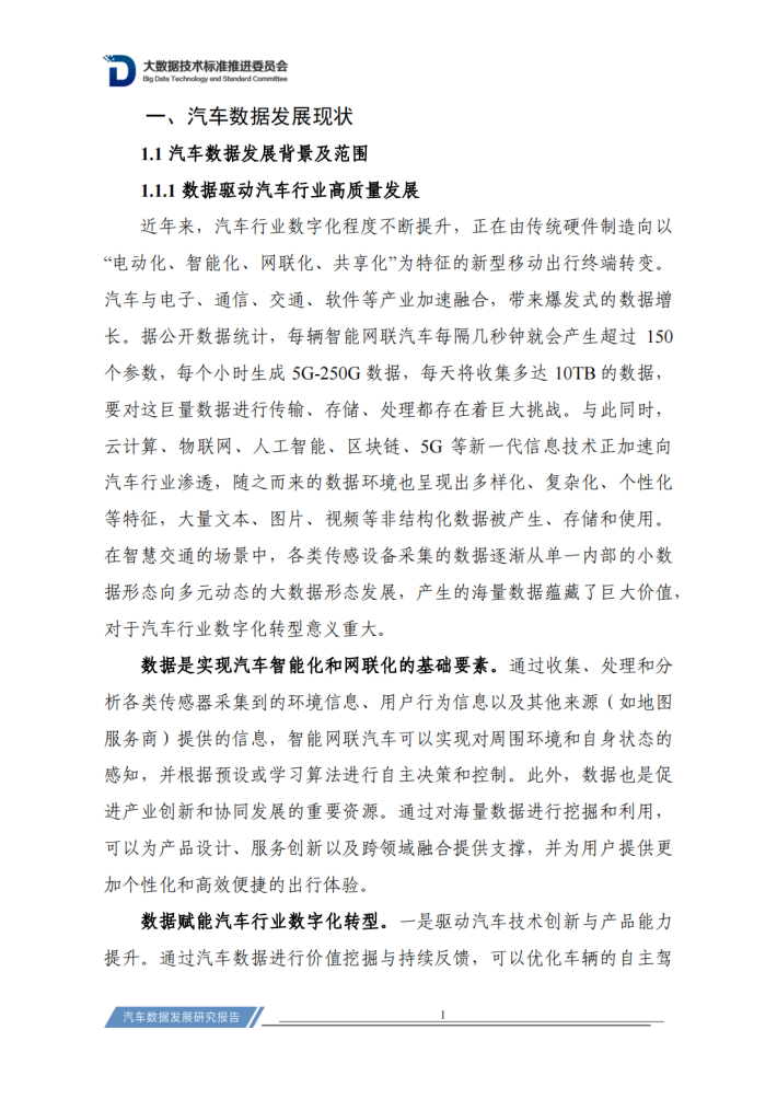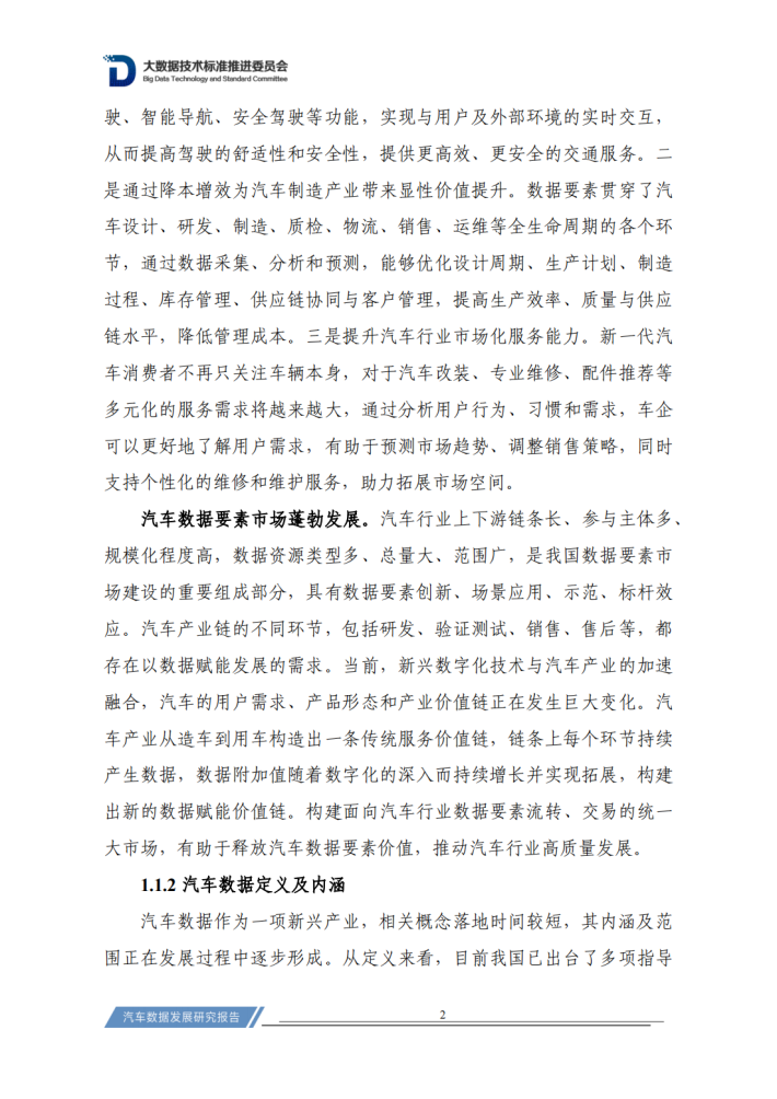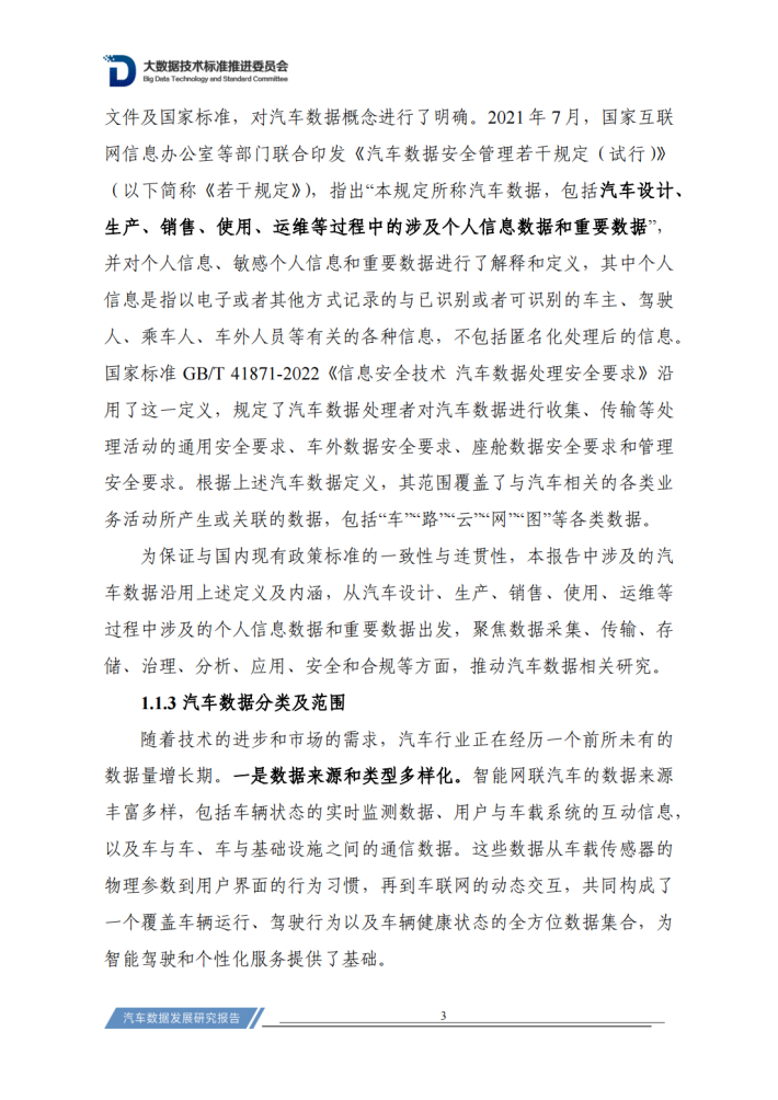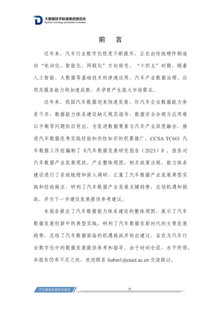 近年来,我国汽车数据迎来快速发展,但汽车企业数据能力参差不齐、数据能力体系建设缺乏规范指导、数据安全合规与应用难以平衡等问题依旧突出。为促进数据要素与汽车产业深度融合,推进汽车数据优秀实践经验和共性知识的积累推广,CCSA TC601汽车数据工作组编制了《汽车数据发展研究报告(2023)》。报告对汽车数据产业发展现状、产业整体视图、相关政策法规、能力体系建设进行了系统梳理和深入调研,汇集了汽车数据产业发展典型实践和经验做法,研判了汽车数据产业发展关键趋势,总结机遇和挑战,并为下一步建设发展提供参考建议。