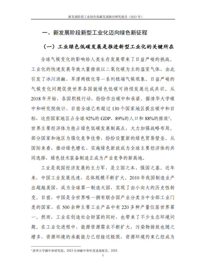 工业绿色低碳发展是新发展阶段推进新型工业化、实现人与自然和谐共生的根本路径。立足新发展阶段、把握新趋势,紧扣中国式现代化建设、碳达峰碳中和等目标任务,我国积极部署一系列工业绿色低碳发展政策措施,全面推进工业高质量发展。
