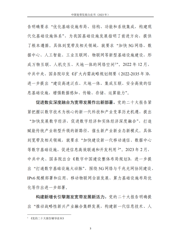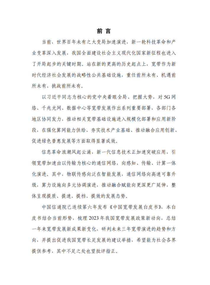 当前,世界百年未有之大变局加速演进,新一轮科技革命和产业变革深入发展,我国全面建设社会主义现代化国家新征程也进入了开局起步的关键时期。站在新的更高的历史起点上,宽带作为新时代经济社会发展的战略性公共基础设施,重任前所未有、机遇前所未有、挑战前所未有。