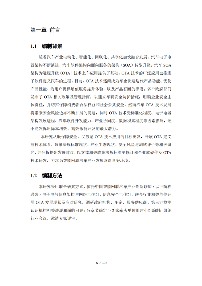 本研究从既保障安全、又鼓励OTA技术应用的目标出发,开展OTA定义与技术体系、政策法规标准现状、产业生态现状、安全风险与测试评价等相关研究,并分析提出发展建议,以支撑相关政策法规标准制修订和企业软硬件及OTA技术研发,力求为智能网联汽车产业发展营造良好环境。