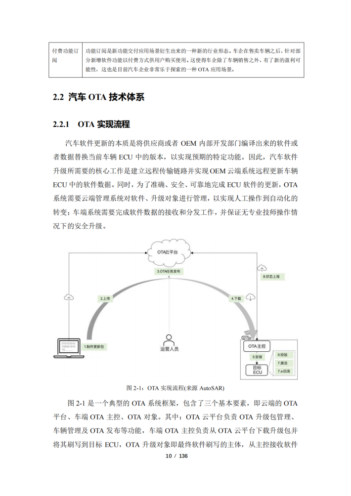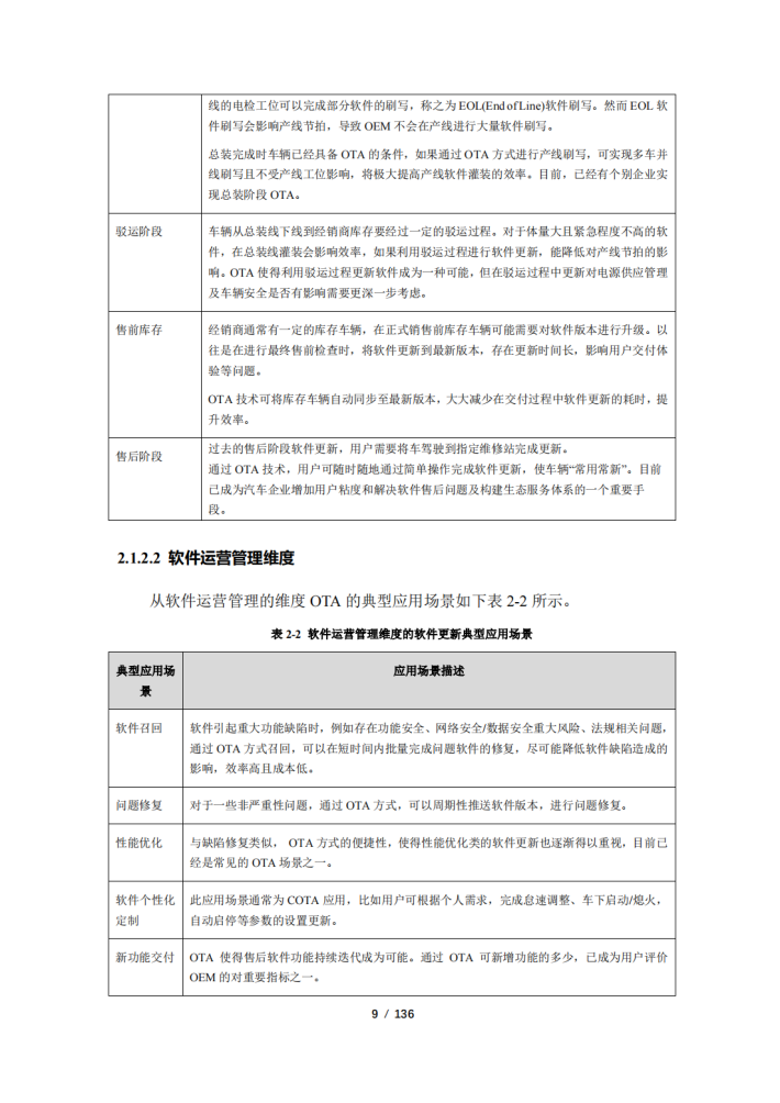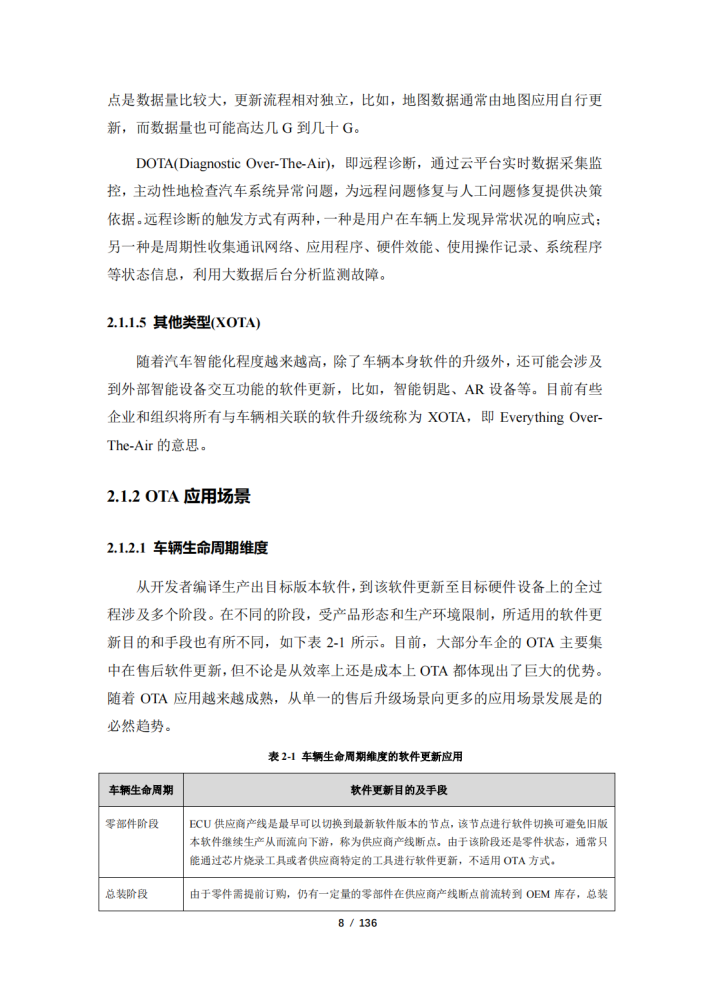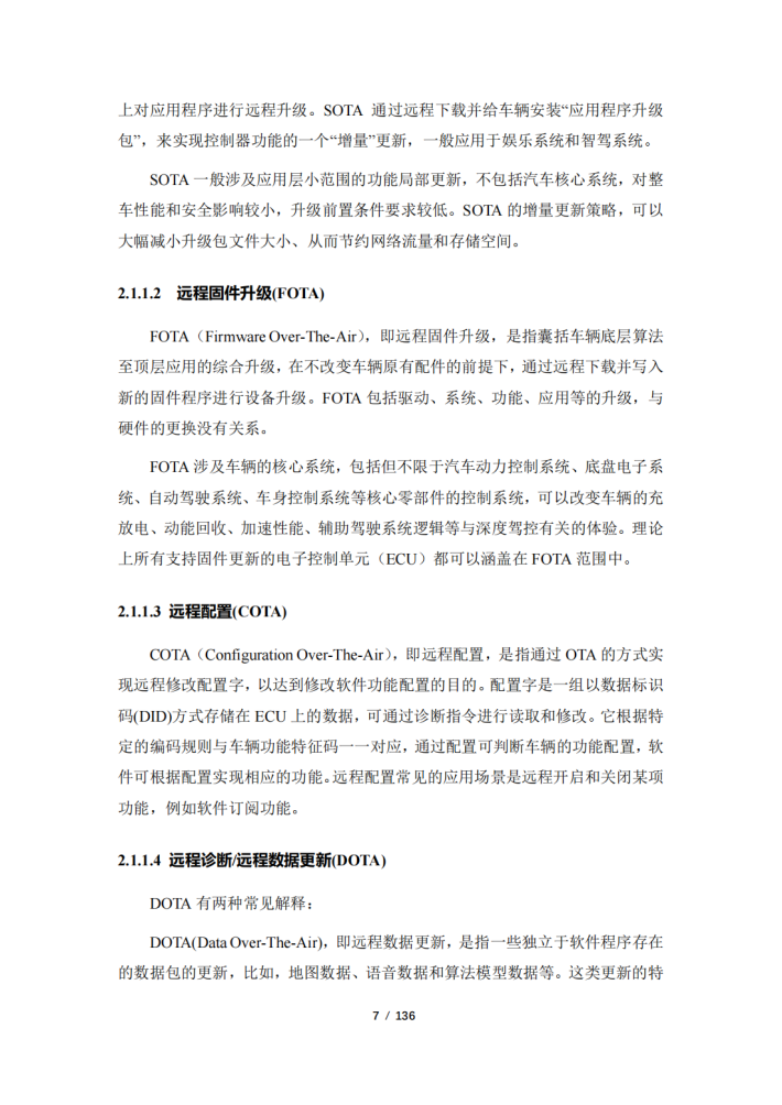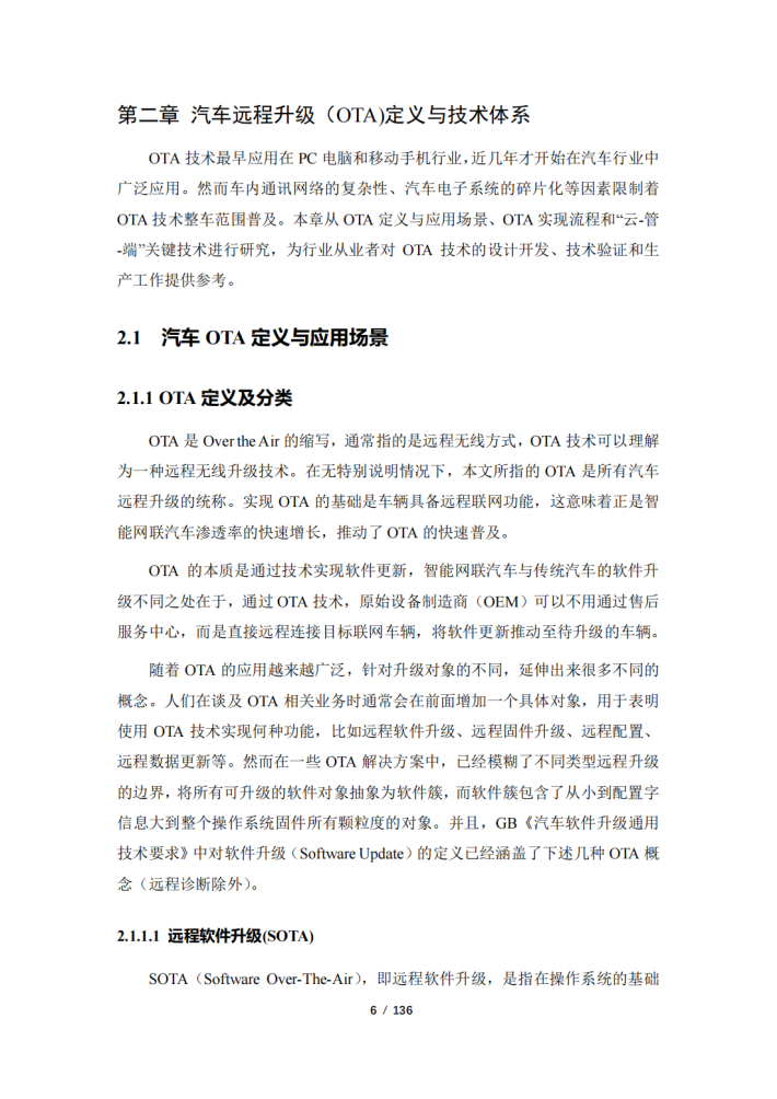 随着汽车产业电动化、智能化、网联化、共享化加快融合发展,汽车电子电器架构不断演进,汽车软件架构向面向服务的架构(SOA)转型升级。汽车SOA架构为远程升级(OTA)技术上车应用提供了基础,OTA技术的广泛应用也推进了软件定义汽车的进程。目前,OTA技术逐渐成为车企快速迭代产品功能、优化产品性能、为用户提供增值服务提升体验,以及产品召回的手段。多个政府部门发布了OTA相关政策及管理指南,以建立车辆安全防护措施,明确企业安全主体责任,并切实保障消费者合法权益和社会公共安全。然而汽车OTA技术发展将带来安全风险边界不断扩展的问题,同时OTA技术受标准化程度、电子电器架构发展进程、汽车软件开发能力、产业协同度、数据积累程度等因素影响,还不能发挥出降本增效、高效敏捷开发的最大潜力。