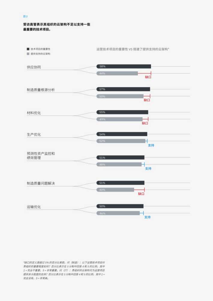 近一半(48%)的受访制造商表示还有空间更充分地释放云计算的价值。企业需要从仅利用孤立云用例节省成本,转变为制定端到端、成效驱动的云战略。