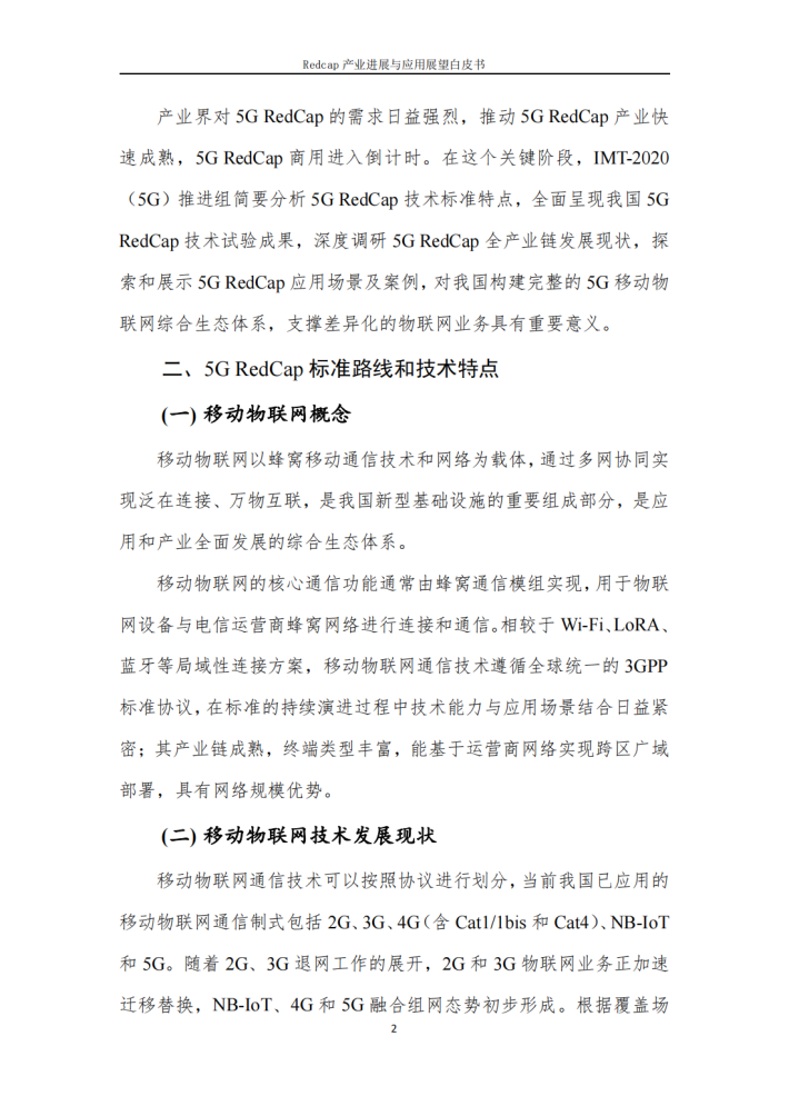 产业界对5G RedCap的需求日益强烈,推动5G RedCap产业快速成熟,5G RedCap商用进入倒计时。本报告在我国5GRedCap即将商用的关键时期,简要分析5G RedCap技术标准特点,全面呈现我国5G RedCap技术试验成果,深度调研5G RedCap全产业链发展现状,探索和展示5G RedCap应用场景及案例,对我国构建完整的5G移动物联网综合生态体系,支撑差异化的物联网业务具有重要意义。