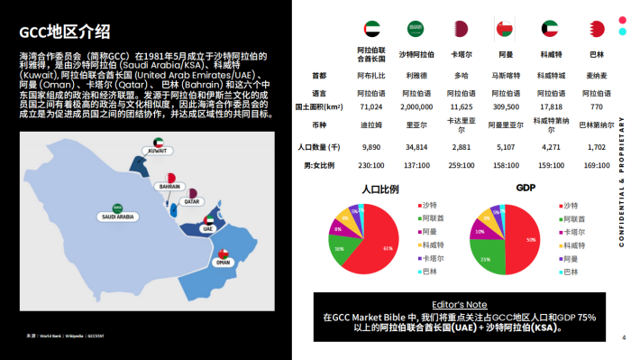 海湾合作委员会(简称GCC)在1981年5月成立于沙特阿拉伯的利雅得,是由沙特阿拉伯(Saudi Arabia/KSA)、科威特(Kuwait),阿拉伯联合酋长国(United Arab Emirates/UAE)、阿曼(Oman)、卡塔尔(Qatar)、巴林(Bahrain)和这六个中东国家组成的政治和经济联盟。发源于阿拉伯和伊斯兰文化的成员国之间有着极高的政治与文化相似度,因此海湾合作委员会的成立是为促进成员国之间的团结协作,并达成区域性的共同目标。