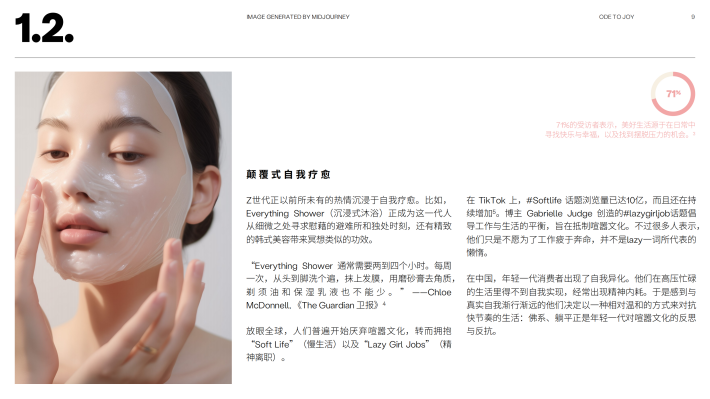 另外,本报告讨论了软实力以及超凡的创造力。现代技术的发展让构画未来前景这件事从未如此简单,那么当擅长世界构建艺术的一代人遇到一系列尖端科技,将会发生什么?事实上,本报告中的所有图像——除了案例部分——都由生成式Al创造。