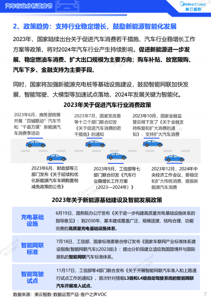 2024年,国家将持续促进新能源进一步发展、稳定燃油车消费、扩大出口规模、完善新能源基础设施、鼓励智能化发展等,支持汽车行业稳定增长。