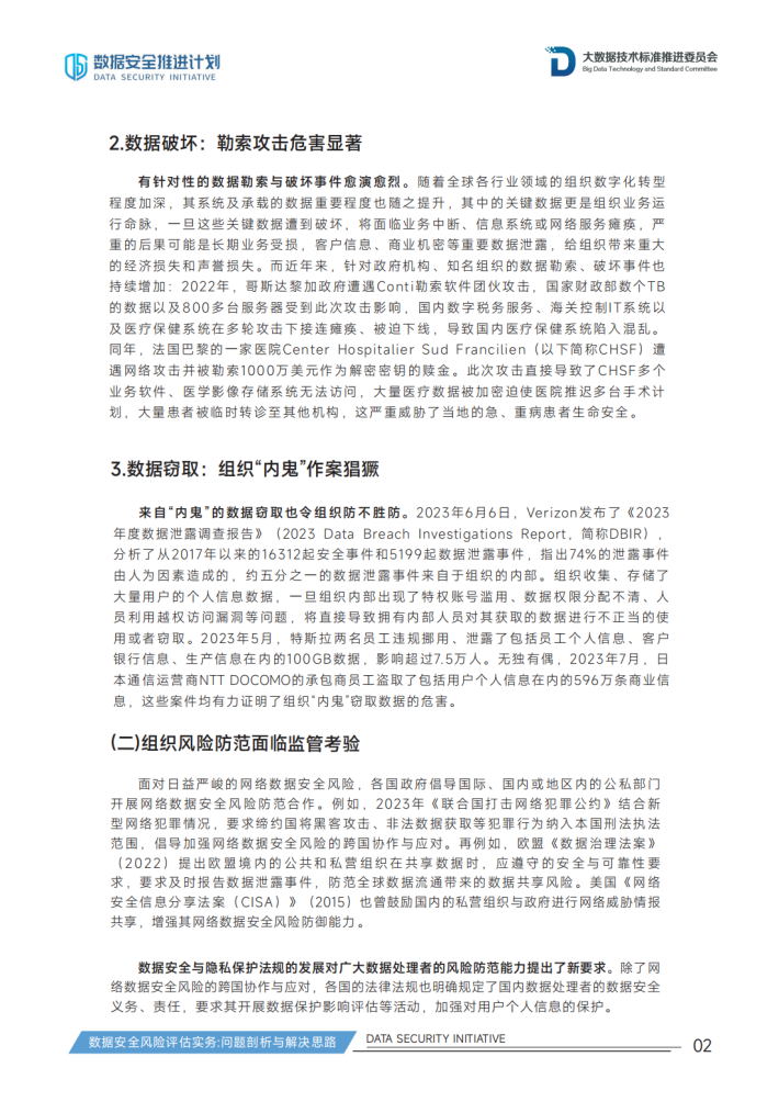 在此背景下,数据安全推进计划(DSI)联合中国通信标准化协会大数据技术标准推进委员会(CCSATC601),携手业内众多专家撰写了本报告。本报告旨在解决数据安全风险评估实务中的诸多问题,介绍了当前我国数据安全风险评估的监管要求、标准编制现状以及评估实施方法,提炼了数据安全风险评估工作的具体实施流程,并以评估实施流程为主线,系统性梳理了组织在评估准备、评估实施、评估总结三大阶段面临的具体实务问题,并提出问题解决思路,为数据处理者、评估机构的数据安全风险评估实务提供参考,为相关数据处理者、服务机构纾难解惑,增强产业界信心。
