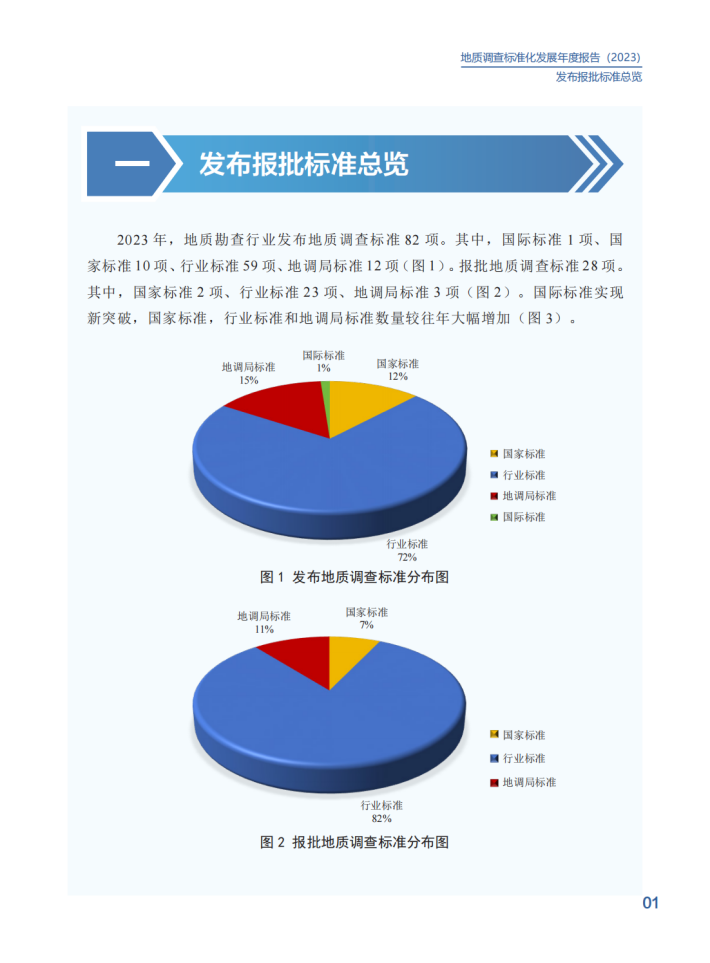 2023年,中国地质调查局深入贯彻《国家标准化发展纲要》,认真落实《自然资源标准化工作三年行动计划(2023-2025)》,不断推进标准制度创新,健全标准体系建设,提升标准供给能力,加强标准宣贯培训,以“高标准”支撑服务新一轮找矿突破战略行动。在中央和地方各级地质勘查单位的大力支持下,发布国际标准1项、国家标准10项、行业标准59项、地调局标准12项,在助力高技术创新、引领高质量发展上发挥了积极作用。