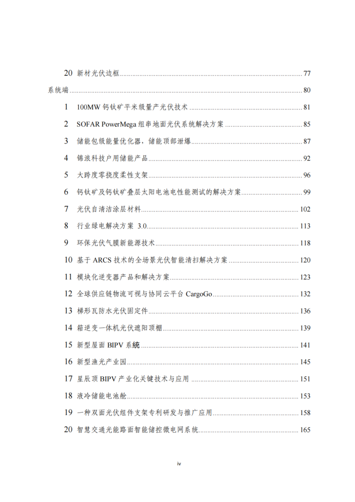 为进一步推动我国光伏产业创新发展,推广光伏领域创新成果,加强创新性产品供给,培育创新性技术文化,中国光伏行业协会(以下简称协会)开展了2023年度光伏行业创新成果推介活动,针对2023年行业内的创新技术、创新设计方案、创新解决方案面向行业广泛征集。截至到2023年11月底,协会秘书处收到了包含硅片、电池、组件、辅材辅料、储能、系统、智能制造等环节的近50项创新成果。
