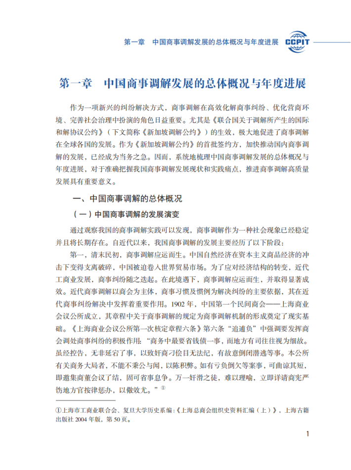 党的二十大报告指出,要推进高水平对外开放,营造市场化、法治化、国际化一流营商环境。作为国际社会广泛认可的商事争端解决方式,商事调解对于营造市场化法治化国际化营商环境具有重要意义。根据世界银行2023年启动的新一轮营商环境评估体系,商事调解的发展水平是重要评价指标之一。特别是2018年《新加坡调解公约》的诞生,标志着“调解全球化”的到来。全球很多国家和地区均致力于完善本国的商事调解法律和制度,积极推动商事调解的发展,着力提高自身在国际商事纠纷解决中的吸引力、竞争力和影响力。在全球商事调解发展浪潮的推动下,我国商事调解的发展也呈现出欣欣向荣之景。商事调解的组织数量日益增多,商事调解员队伍不断壮大,商事调解的社会影响逐步提升,商事调解的文化日渐浓郁。但是,目前我国商事调解的实际发展现状究竟如何,商事调解的组织、人员及业务数量如何,目前并没有权威、统一的数据报告。