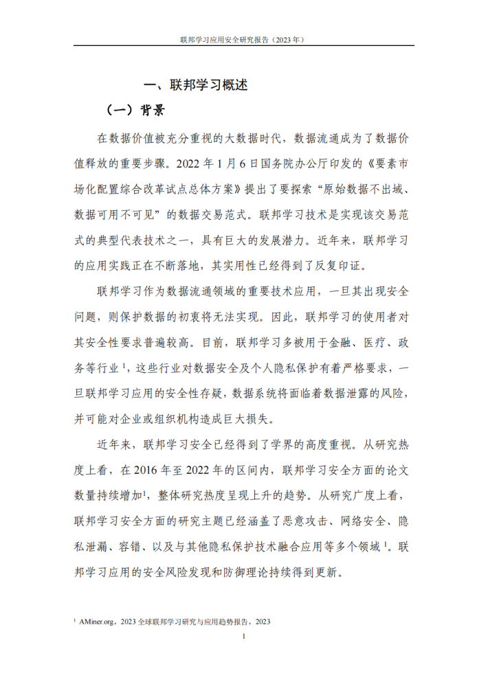 在追求数据要素高效高质流通的当下, “数据孤岛”现象无疑是数据要素市场化建设进程中的障碍,于是“原始数据不出域,数据可用不可见”的新范式被提出,联邦学习也作为能够实现该范式的代表技术之一,得到了快速的发展。联邦学习技术可避免原始数据流出本地,转而通过“本地存储+分布式学习”的联合机器学习建模方式完成多方数据价值的释放,很好地解决了数据流通与数据安全之间的矛盾。