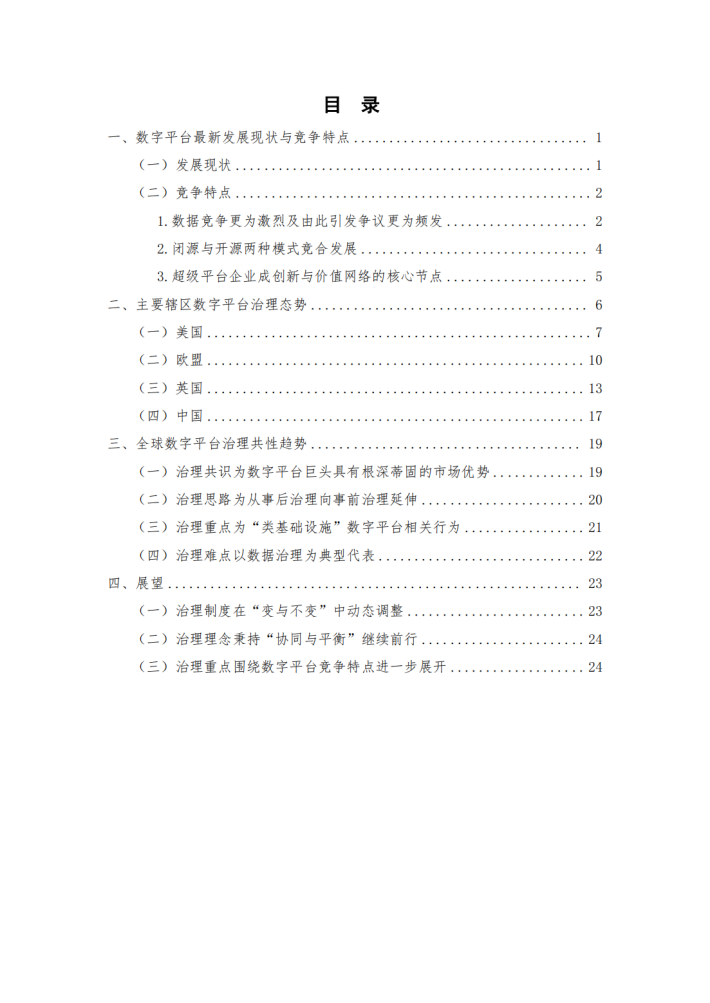 展望未来,各国将普遍采用复合型的政策工具、发挥各个治理手段的合力。治理重点围绕数字平台竞争特点进一步展开,生态构建规则的开放程度仍将持续成为平台治理焦点;数据问题的复杂性将进一步延续,数字平台数据搜集与使用行为相关规则将逐步清晰;开源或闭源数字平台将自身优势变现到其他相关市场并实施渠道封锁、技术封锁等反竞争行为,将持续成为数字平台治理的重点规制方向。