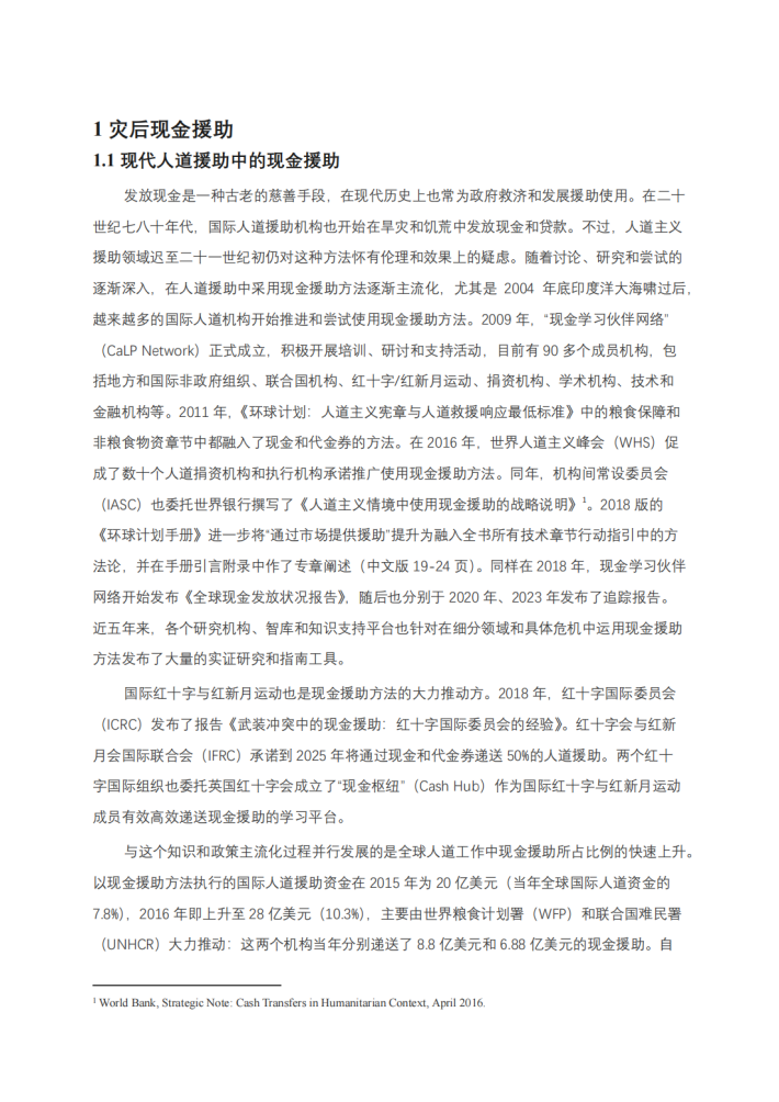 提出了在多个领域使用现金援助的建议,以及现金援助方法在执行中需要注意的风险。