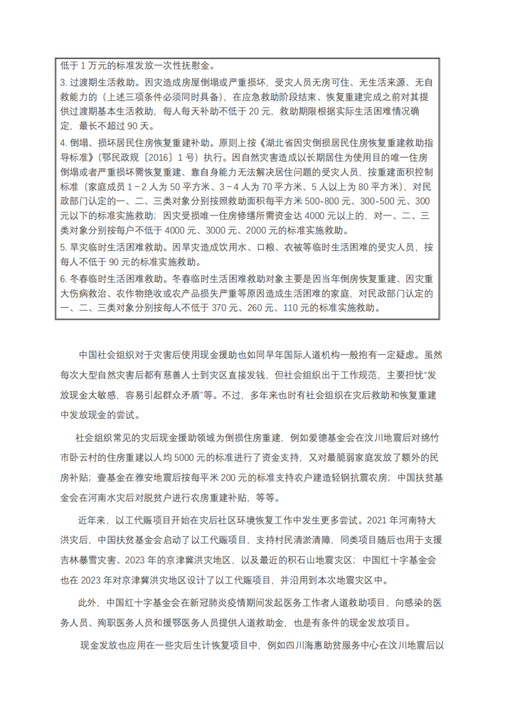 甘肃/青海积石山地震发生以来,许多社会组织在考虑如何更加有效地支持恢复重建时,也开始使用现金援助的方法。总体来说,中国社会组织在灾后使用现金援助时,态度较为谨慎,也仍处于摸索方向、积累经验的阶段。