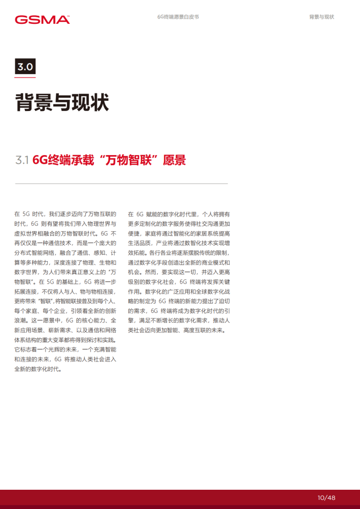 在6G赋能的数字化时代里,个人将拥有更多定制化的数字服务使得社交沟通更加便捷,家庭将通过智能化的家居系统提高生活品质,产业将通过数智化技术实现增效拓能。各行各业将逐渐摆脱传统的限制,通过数字化手段创造出全新的商业模式和机会。然而,要实现这一切,并迈入更高级别的数字化社会,6G终端将发挥关键作用。数字化的广泛应用和全球数字化战略的制定为6G终端的新能力提出了迫切的需求,6G终端将成为数字化时代的引擎,满足不断增长的数字化需求,推动人类社会迈向更加智能、高度互联的未来。