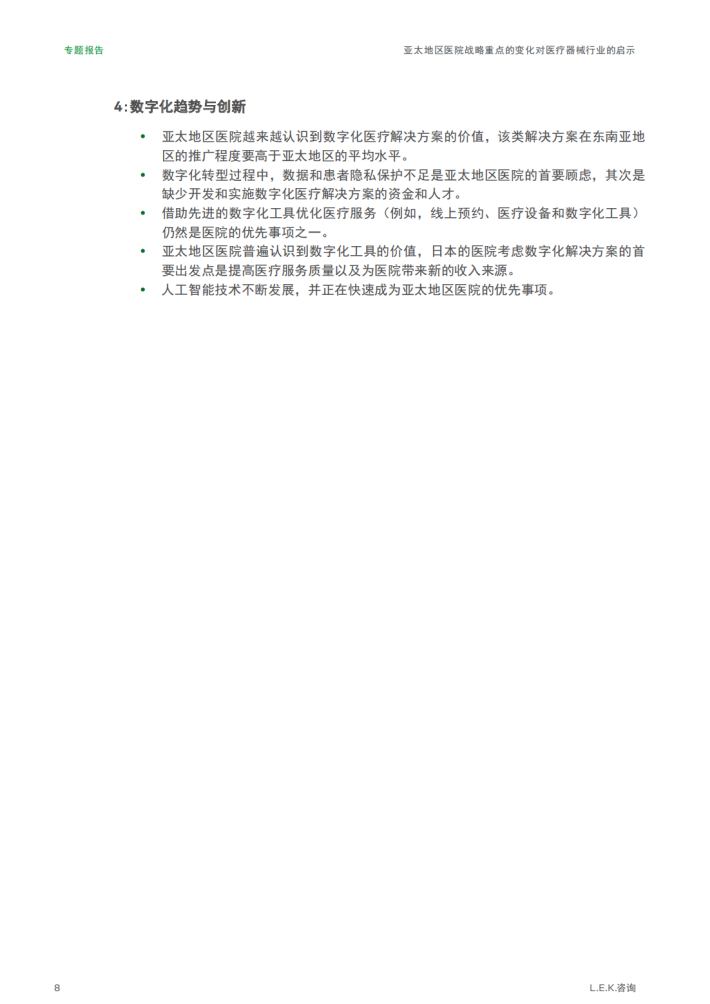 亚太地区医院希望与医疗器械公司建立战略合作伙伴关系。