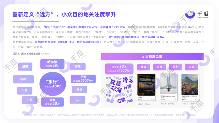 另一方面,疲于消费浪潮的裹挟,大家重新审视消费本身,化繁为简回归「审慎消费」,同时更加关注精神层面的“爱自己”,以「悦己图鉴」重新定义消费观。而文旅话题的热度居高不下,人们追寻「精神远方」,透过生活气、认同感将“自我的种子”带到真正的“目的地”。