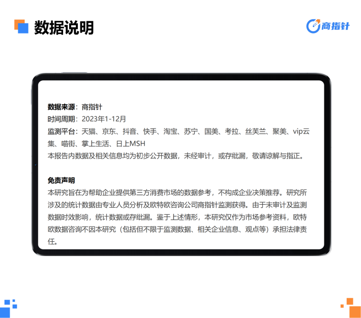 从零售额平台分布来看,2023年天猫份额占比超3成,相较上年有所松动,但仍为份额占比最大的平台,淘天整体份额占比超5成;而抖快平台零售额同比增长均在1倍左右,带动份额快速提升,两个平台份额占比相较上年提升近6%