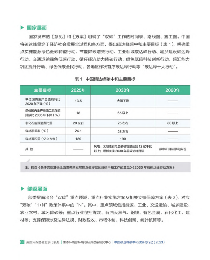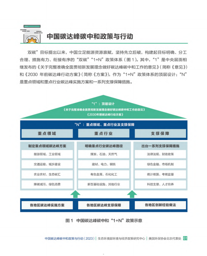 为落实“双碳”目标,中国将“双碳”工作贯穿于经济社会发展全过程和各方面,构建起目标明确、分工合理、措施有力、衔接有序的“1+N”政策体系,形成各方面共同推进的良好格局。截至2023年6月底,中国可再生能源装机约占总装机的48.8%,历史性超过煤电。同时,中国承诺不再新建境外煤电项目,并出资200亿元建立“中国气候变化南南合作基金”,支持其他发展中国家应对气候变化。