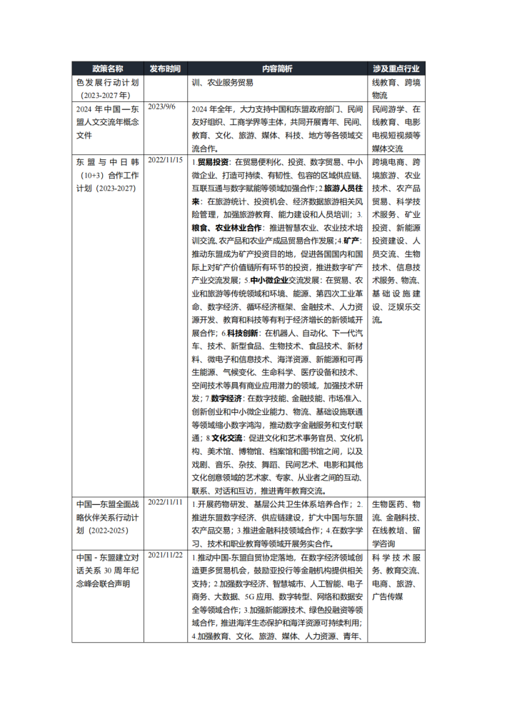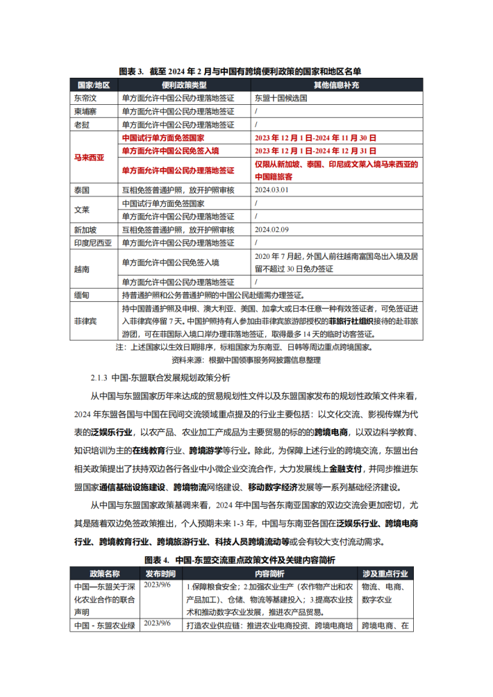 从经贸交流政策来看,中国与东南亚国家一直以来都是重要的外贸伙伴,东南亚各国也是与中国地缘层面交流衔接最紧密的国家联盟之一,2023年中国-东盟国家试行的一系列签证优惠政策等均是基于中国与东盟各国双边贸易规划提出的系列政策。