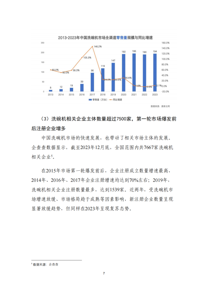 改革开放以来中国制造业创新发展取得了成绩有目共睹。服装、家具、家电等“老三样”加快高端化、智能化、绿色化转型,不断焕发新生机;新能源汽车、锂电池、光伏产品等外贸“新三样”凭借新技术、新产品脱颖而出,收获竞争新优势。在技术创新推动下,作为我国制造与消费紧密结合的代表性产品,我国洗碗机产业也进入到创新引领和高端产品拓展的新发展阶段。经过前期蓄势,近年来国产品牌洗碗机强势崛起,逐渐取得竞争优势。2023年,中国洗碗机市场上国产品牌份额首次超越外资品牌,洗碗机领域也被视为中国制造自立自强、从跟跑到领跑迈向价值链高端的缩影,具有研究样本价值。