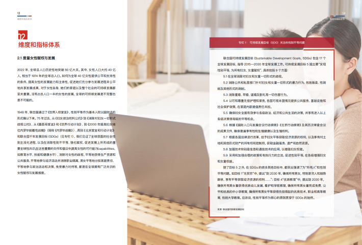 本报告旨在建立一个新的女性赋权与发展评价框架,并以指数化的方式对世界各国女性赋权与发展状况进行扫描,为相关的政策制定和议程的推进提供洞察。女性赋权与发展指数(Women'sEmpowerment,and-Development Index,以下简称“WEDI”)的构建充分吸收了《北京宣言和行动计划》”联合国可持续发展目标以及.《世界人权宣言》等重要国际文件和倡议的精神和主张。指数编制采用联合国开发计划署(UNDP)人类发展的基本理念,坚持全生命周期视角,聚焦时代性的女性发展问题,兼顾规范性和实证性,强调评价逻辑的一致性,同时考虑公平与发展、机会与结果。