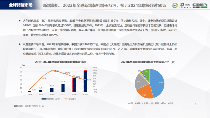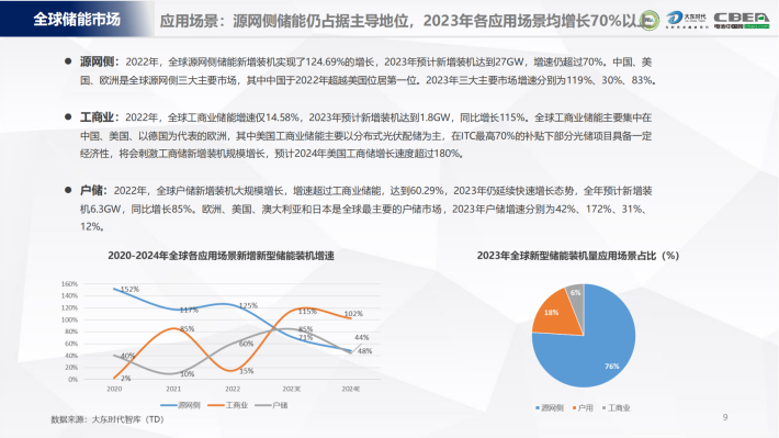 2023年,全球工商业新型储能新增装机增长速度超过源网侧和户储端,达到115%。