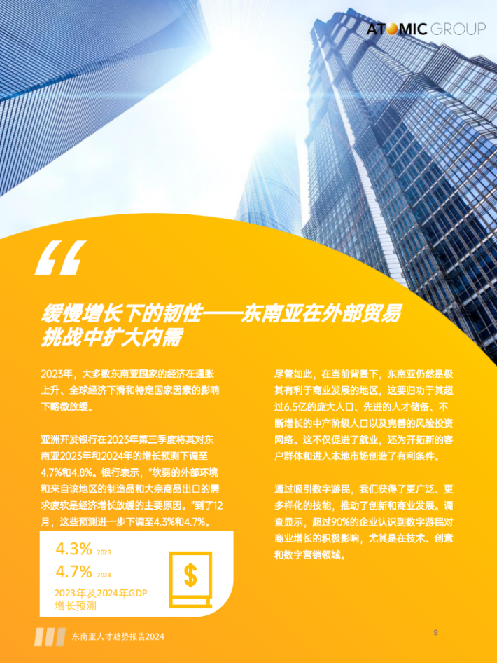 东南亚地区是一个以快速经济增长、文化多样性和技术进步为特点的地区,它的市场充满活力,人力资本的重要性不言而喻。《东南亚人才趋势报告2024》旨在帮助东南亚地区的领导者了解和应对这不断变化的人才动态,从而适应该地区社会经济轨迹。