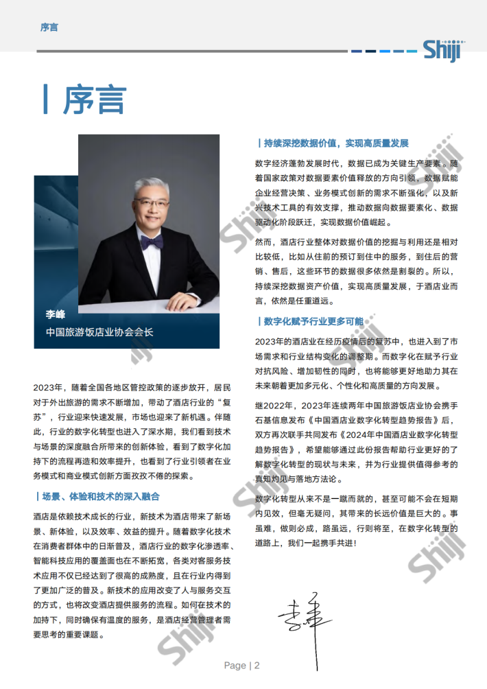 2023年,随着全国各地区管控政策的逐步放开,居民对于外出旅游的需求不断增加,带动了酒店行业的“复苏”,行业迎来快速发展,市场也迎来了新机遇。伴随此,行业的数字化转型也进入了深水期,我们看到技术与场景的深度融合所带来的创新体验,看到了数字化加持下的流程再造和效率提升,也看到了行业引领者在业务模式和商业模式创新方面孜孜不倦的探索。