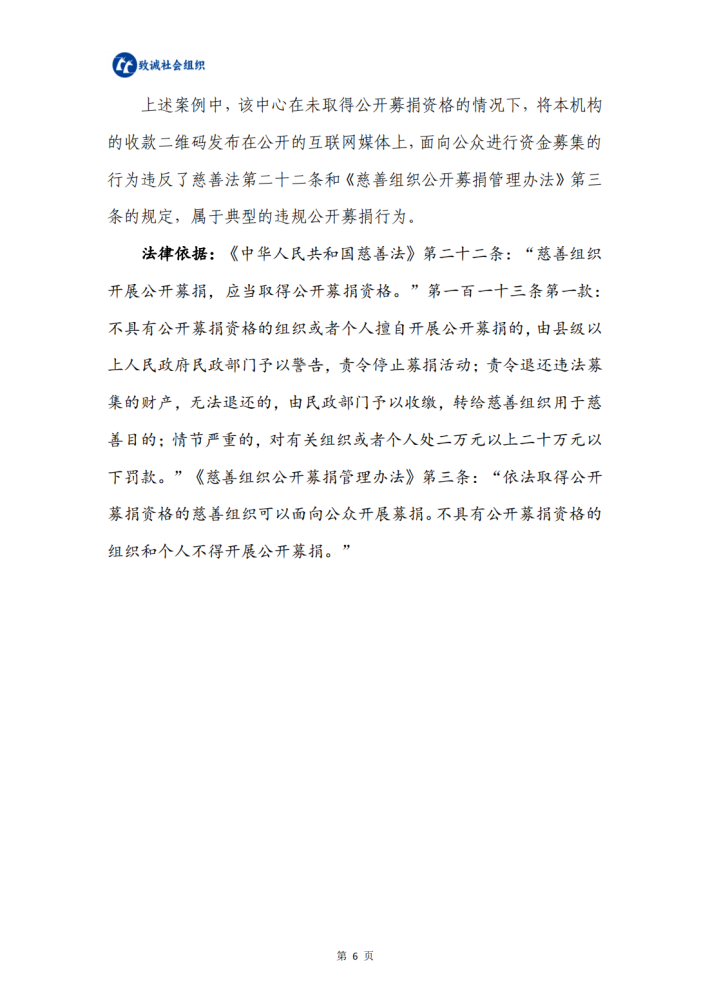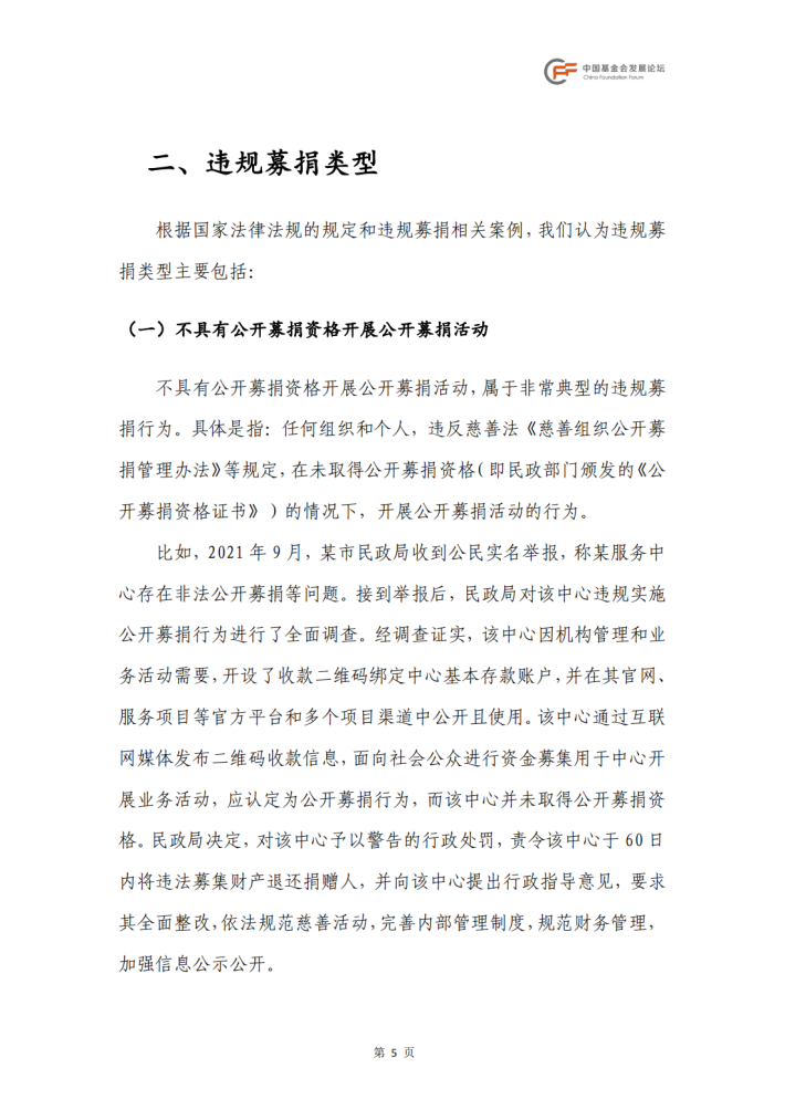 公开募捐取得较好成绩的同时也存在诸多问题,比如没有公开募捐资格开展公开募捐活动、募捐过程信息公开不及时、募捐方案未备案、募捐文案侵权等问题。为进一步规范慈善募捐行为,项目组收集了因违规募捐被行政处罚的案例、司法裁判案例以及网络舆情案例等,结合新修改的慈善法及配套政策的规定,编写了《违规募捐行为分类及法律问题分析报告》,供相关部门和行业组织参考,以期推动我国慈善事业的高质量发展。