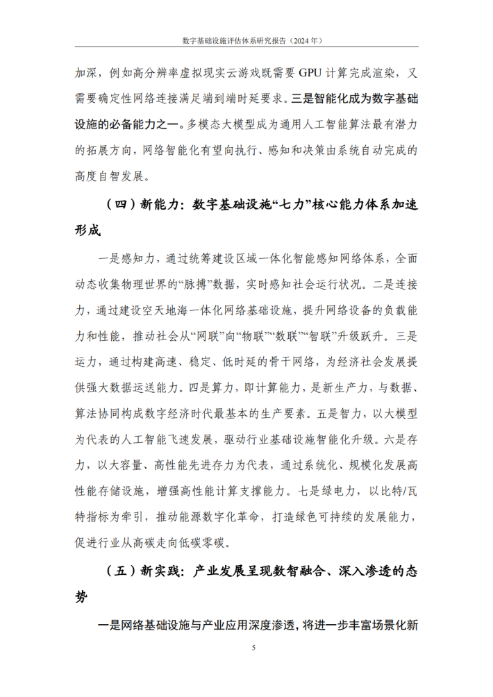 新需求催生新能力,在经济社会需求快速变化、普惠个性包容发展的新形势驱动下,数字基础设施建设的内涵外延与重心方向也在发生深刻调整,核心能力从“算力、存力、运力”向“多力协同”快速演进,以满足各行各业对更广连接、更大带宽、更强算力、更高智能、更可持续等的多元化新需求,数字基础设施体系逐步进入敏捷部署、弹性配置、跨域调度、均衡提升阶段。