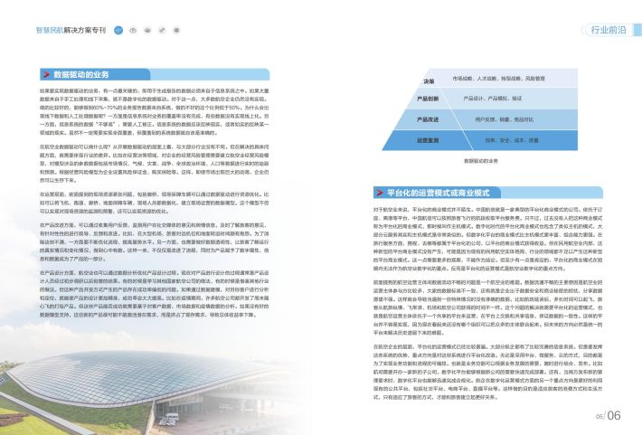 在航空业数据驱动可以做什么呢?从开展数据驱动的层面上看,与大部分行业没有不同。但在解决的具体问题方面,就需要体现行业的差异。比如在经营决策领域,对企业的经营风险管理需要建立航空业经营风险模型,对模型涉及的参数数据包括市场情况、气候、灾害、战争、全球政治环境、人口等数据进行实时的追踪和预测。根据经营风险模型为企业设置风险保证金、购买保险等。这样,即使市场出现巨大的动荡,企业仍然可以生存下来。