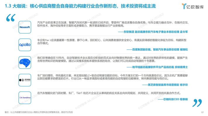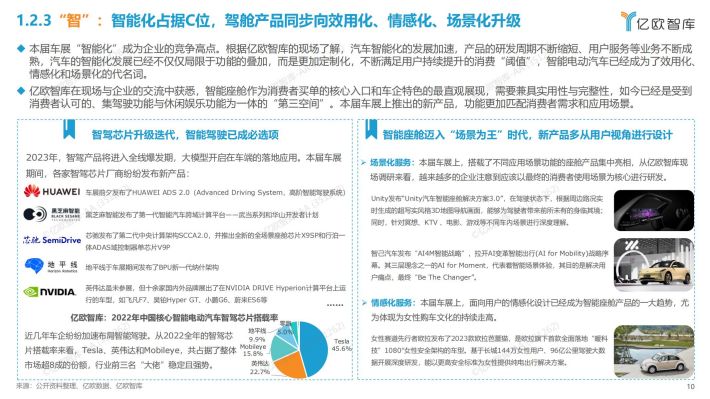 科技企业步步紧追拓生态:众多科技企业拓展汽车版图,带着新产品与新技术参展上海车展,以构建智能化解决方案为途径广泛拓展生态,通过广泛的合作,扩大企业“生态圈”;