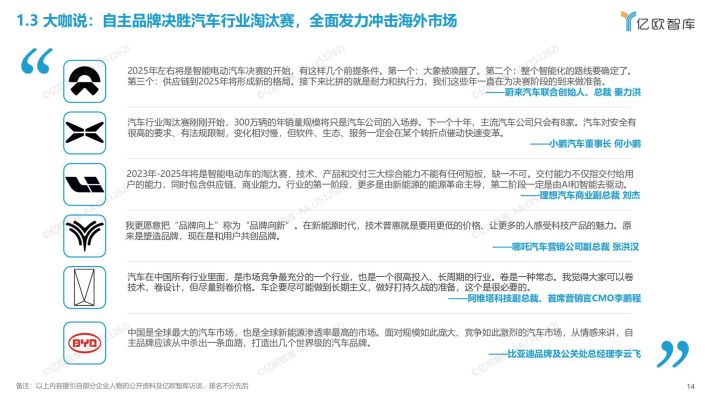 未来机遇显著但挑战犹存:亿欧智库认为,未来的汽车产业充满了希望,自主品牌将逐步崛起,站上更大的世界舞台。同时未来也依然充满竞争