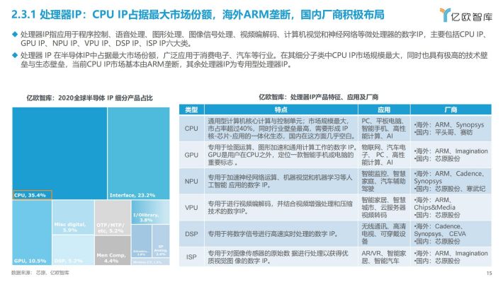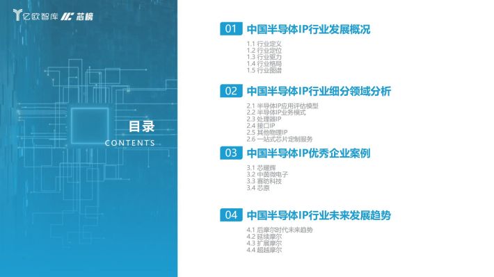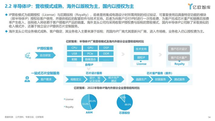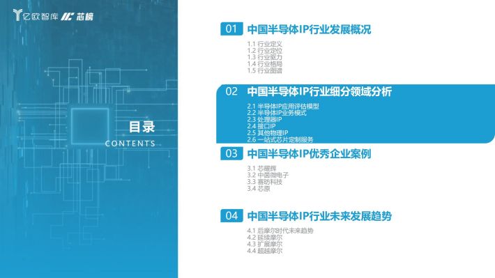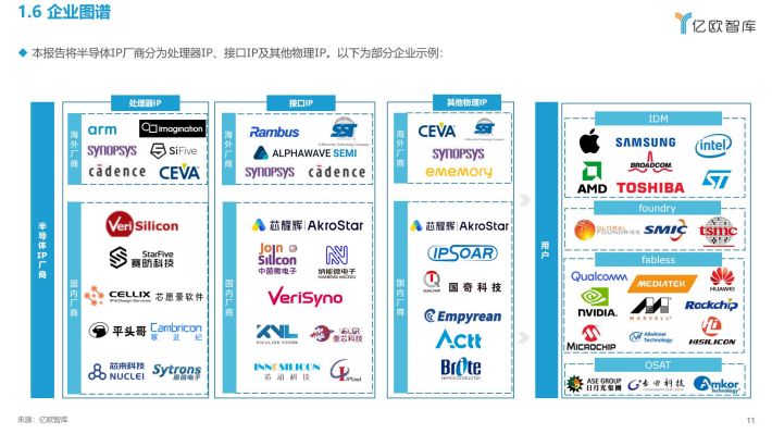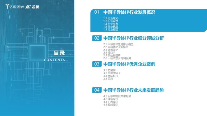 半导体IP(Intellectual Property,知识产权):通常也称作IP核(IP core),指芯片设计中预先设计、验证好的功能模块,处于半导体产业链最上游,为芯片设计厂商提供设计模块。